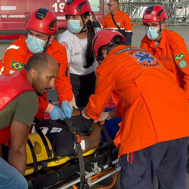 Treinamento reuniu equipes de segurança, saúde e resgate para testar procedimentos de resposta a à situação de urgência O Heliporto…
