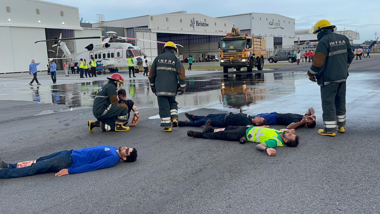 O Heliporto Farol de São Tomé, administrado pela Infra Operações Aeroportuárias (INFRA), em Campos dos Goytacazes, realizou nesta quarta-feira (10) o quinto simulado de emergência aeronáutica. A ação testou a capacidade de resposta das equipes em um cenário de falha grave a bordo, incêndio em motor e atendimento a sete feridos.